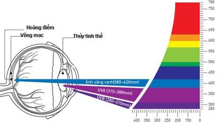 Đặc biệt, loại bức xạ có năng lượng cao – HEV hay còn gọi là ánh sáng xanh, chiếm đến 30% trong ánh nắng mặt trời còn tác động vào đáy mắt, làm suy thoái võng mạc, phá hủy lớp tế bào biểu mô sắc tố võng mạc RPE, gây thoái hóa hoàng điểm. Viện Mắt Mỹ (NEI) cho biết, ánh nắng mặt trời khiến mắt lão hóa nhanh, bệnh thoái hóa hoàng điểm đến sớm hơn và nặng thêm.